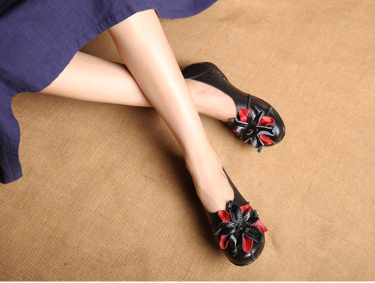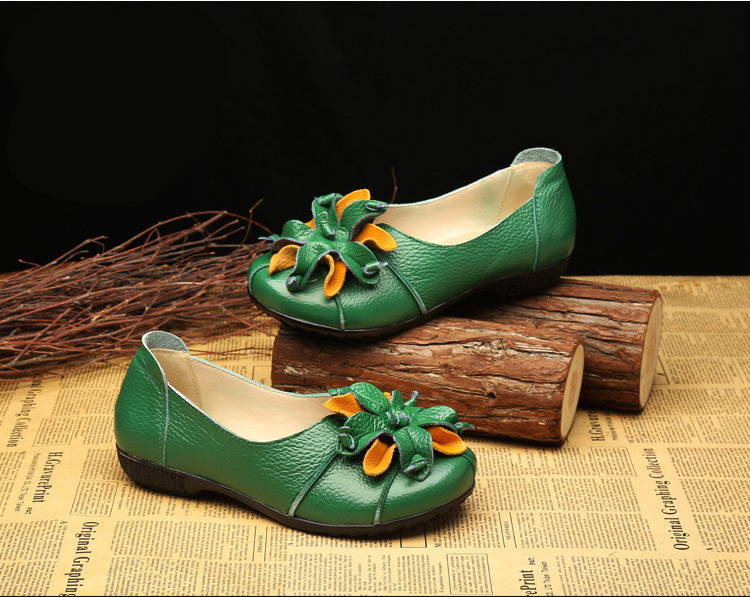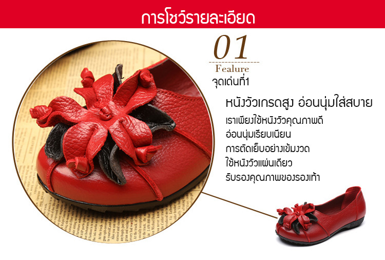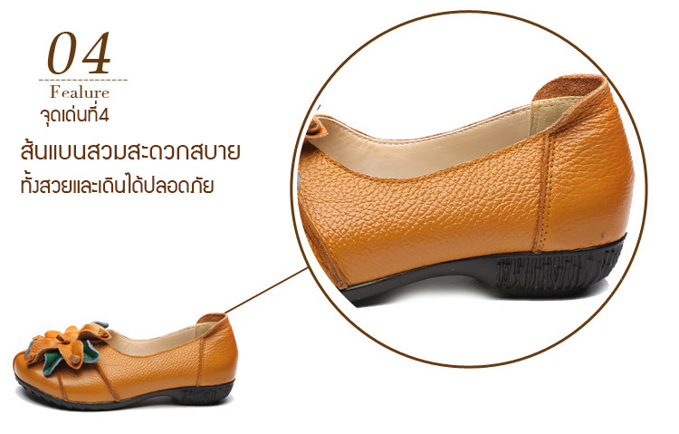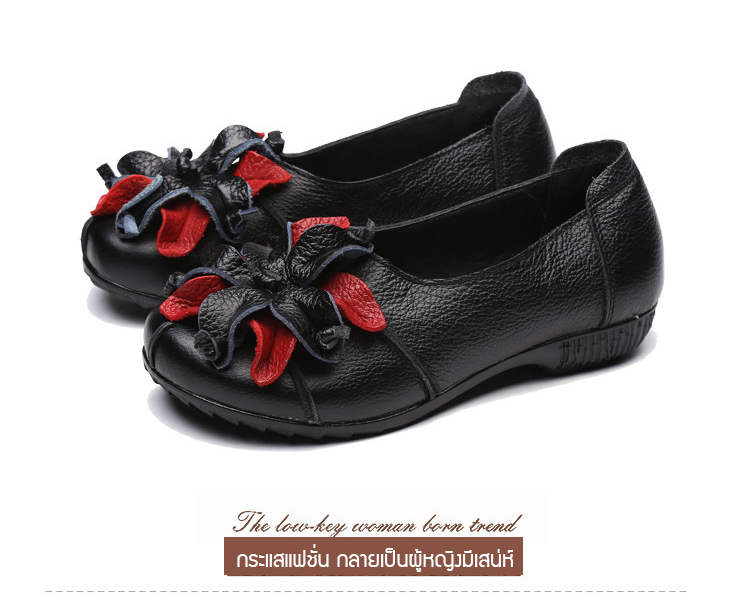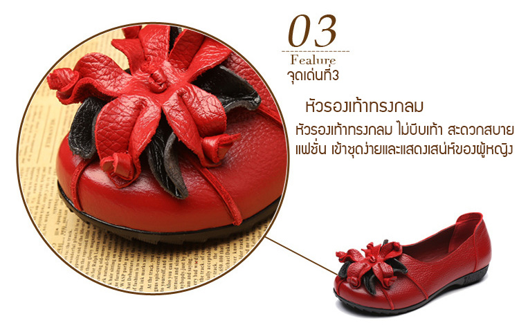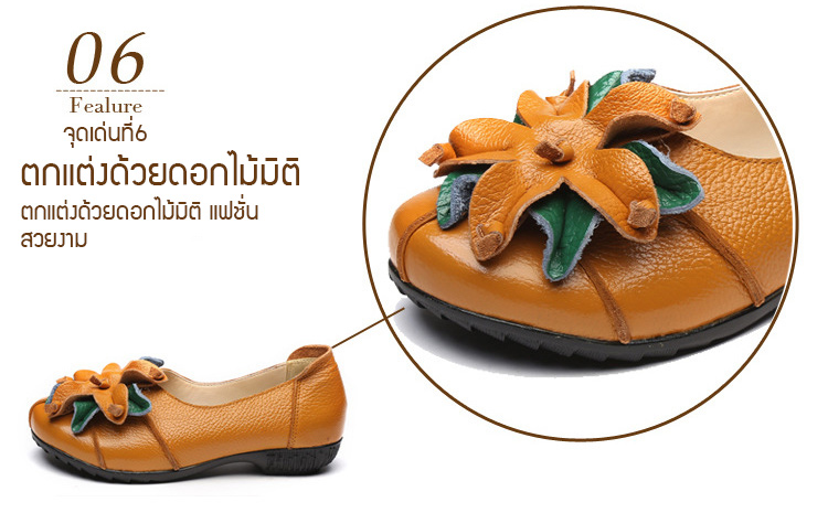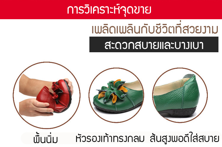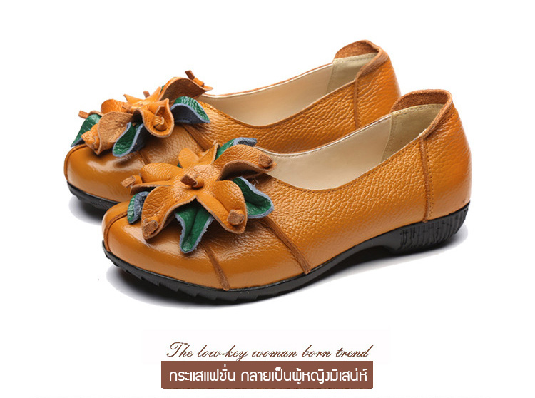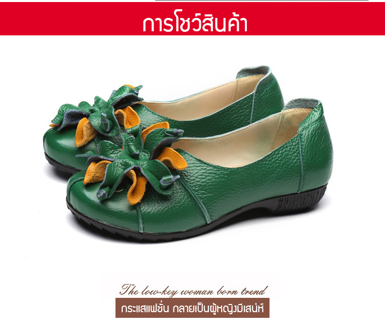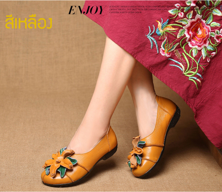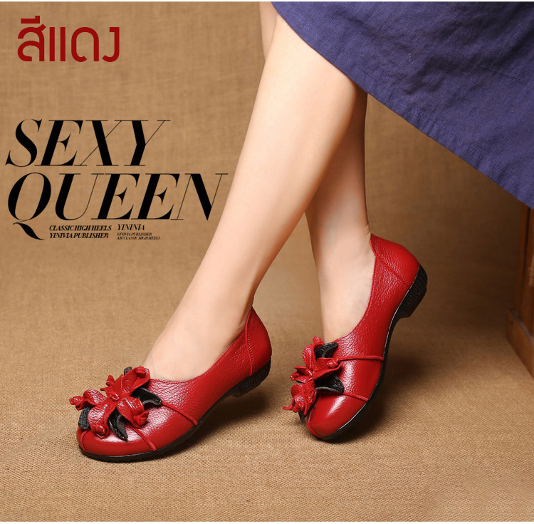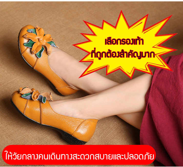 รองเท้าหนังแต่งดอกไม้สตรี ใช้วัสดุหนังทำด้วยมือ สวมใส่นุ่มมาก แฟชั่นใส่สบาย ไม่ลื่น ไม่กัดเท้า ไม่เหนื่อย แม่ใส่ดูสวย ใส่ไปช้อปปิ้ง เดินทั้งวันก็ไม่เหนื่อย SALE 70%OFF เก็บเงินปลายทาง+จัดส่งฟรีถึงบ้าน+เปลี่ยนและคืนได้ภายใน7วัน